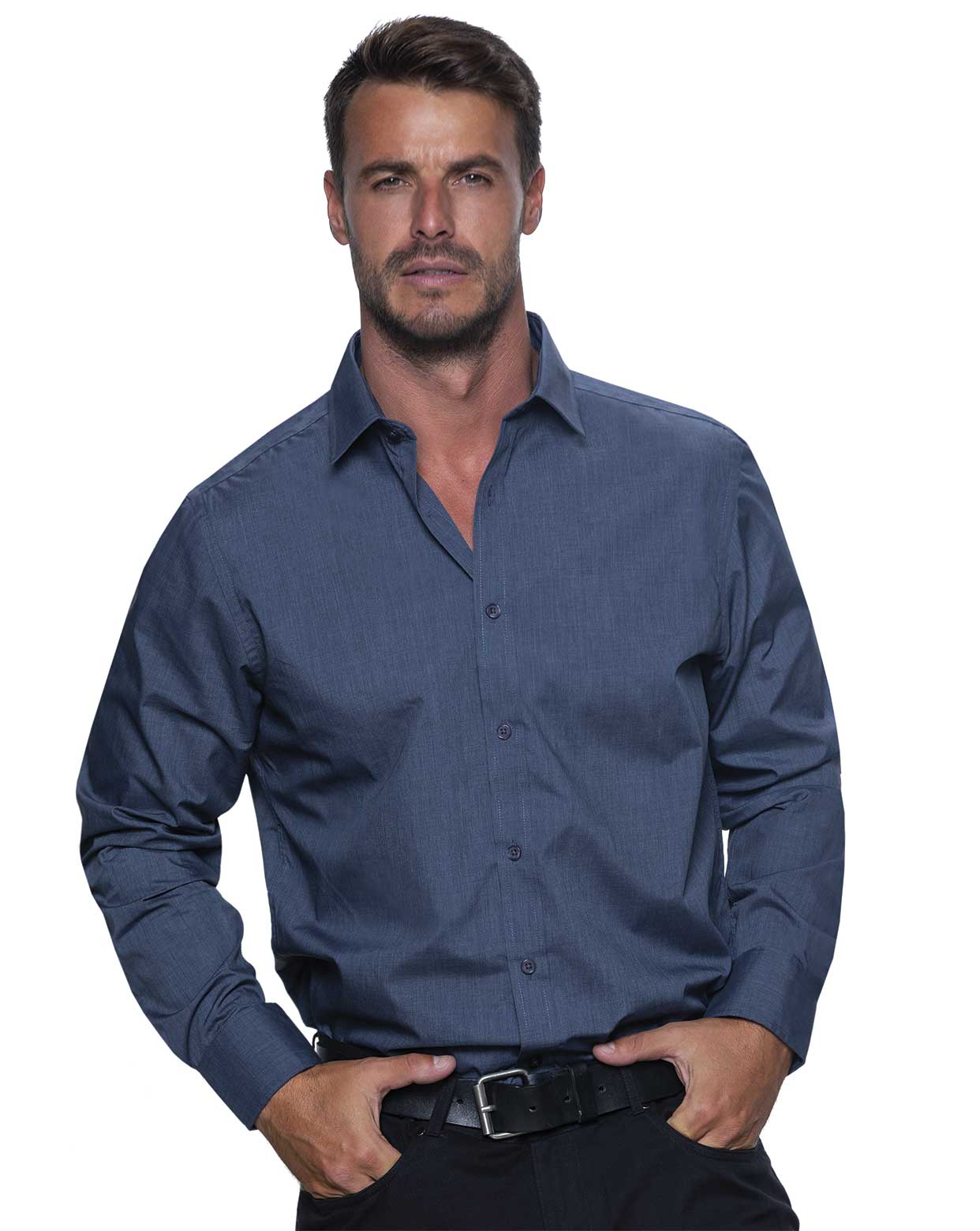 Camisa de manga larga para hombre con tejido efecto vaquero. Camisa elegante de hombre ideal para empresas.