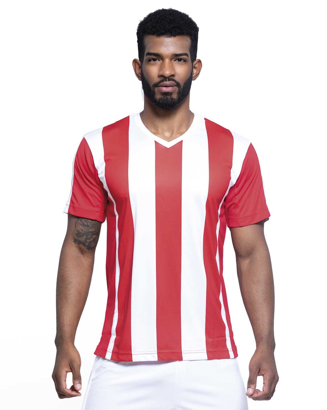 Camiseta de rayas verticales de fútbol para hombre con cuello de pico. Disponible en 8 colores y desde la talla S hasta la talla XXL. (Para tallas más pequeñas, consultar en la camiseta de niño REF: PREMIERTSK ).